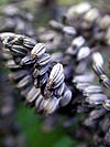originally thought to be just an annual, it came as a surprise when they survived the winter to come back even stronger the second season. it's mostly seeds now, but fennel seeds - which taste exactly like licorice for those who don't know - can be used for flavoring. maybe instead of candy i can just leave out a tray of fennel seeds for the trick or treaters on october 31st. then there's of course the vines of concord grapes growing on what use to be a children's jungle gym. like tomatoes, i'm not a big fan of concord grapes, i find them too small and they all have seeds. the flavor though, when they're ripe, isn't so bad. i usually grab a handful and chew them up before spitting them out.