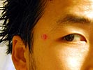 sometime during the night my shave wound started to bleed. with dried blood caked on my face, i grabbed my things and drove to cambridge, where i had a supply of bandaids. i removed the old bandaid (failing to wait the prescribed 24-48 hours before doing so) and inspected the area where my nevus used to be, now just a small shallow bloody crater next to my eye. i took a shower (staying away from the cut) and redressed the wound, putting some ointment on it in the process.