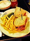 i went over to the theatre and retrieved my cellphone beforehand. "what a cute little cellphone," one of the girls (the really pretty one i mentioned from a few weeks ago) said as she returned my phone. to be honest, i'm not a big fan of zaftigs, their breakfast stuff is okay but a bit pricey. but in coolidge corner, that seems to be the only place we ever go for food, and i wasn't about to break away from tradition. i had a meaty sandwich ($10), finishing up my pickle slice and all my fries before digging into the sandwich.
