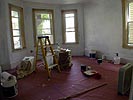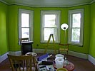 i cracked open the second can of semi-gloss after finishing the doorway leading into the living room. what's left of this semi-gloss will also be used for the bathroom ceiling, the remaining windows, and the wainscotting in the kitchen. when i got hungry i heated up some soup on the stove and ate it in front of the television in the living room. my father showed up just as soon as i was about to start on the windows, and he helped me finish two of them. it wasn't just us who were painting. steve, my next door neighbor from across the street, was busy working on his house, and my neighbors next to my place were having their front porch painted. my work ended at 3:30pm.