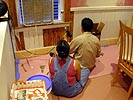 my sister and father came by in the afternoon to help me clean the kitchen and bathroom. sanding, caulking, moving everything out of those two rooms, vacuuming, and even paint stripping some of the wainscotting. i hate paint stripping. fortunately i wasn't the one doing it, but the smell of melted paint gets everywhere.