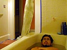 but because of the end of daylight savings time, i was done at the new time of 2am. after it was all over, i wanted to wash up before going to bed, but since i was afraid of splattering water on the new paint (not yet completely dry), i decided to take a bath instead, getting a nice hot soak while reading one of my favorite magazines (hint: it's got rebecca romijn-stamos on the cover).