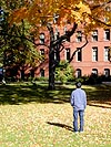 it was a fedex station inside of kinko's, it was pretty busy, right in the middle of lunch hour. next, i cashed some checks. with errands done, i walked back home, cutting across harvard courtyard. big mistake. it must've been right when classes were over (1pm), because suddenly the entire campus was swarming with students. not just any students mind you, harvard students. smarties! but it's kind of hard to tell if they're really harvard students or not. here's how i figure it: if they're carrying books,