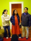 for dinner i reheated the lasagna my father had brought over. while relaxing in the living room watching panic room on pay-per-view, i heard my doorbell ringing. it was manny doing one of his signature surprise "i don't need to call first because i'm manny" visits. he brought along his sister maureen and her roommate anna, visiting boston from mt.holyoke. maureen wanted to see my place and the much-talked-about colors. "cheerful" was the adjective both she and her roommate kept on using to describe my color scheme. i was also very proud to show them my little alcove of red toys in the living room, including the fishing cats. after about 20 minutes they left, refusing to accept my offer of surplus halloween candies, not even the malt whopper balls.