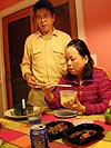 my parents dropped by for dinner, bringing over food they'd cooked at the cafe, along with some more cooking supplies.