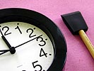 when i got bored of doing that and with a big mess of junk all over my living room floor, i decided to paint the black plastic clock i'd eventually hang in the kitchen. latex paint on smooth plastic is a bad combination, the red salsa paint sticking but the strokes of the small sponge brush i used can be clearly seen. maybe the second coat will be a lot better. it's nice to find yet another use for my surplus salsa red. first the coat closet, now the kitchen clock. i'm tempted to go out and buy some used wooden furnitures and give them all a salsa red makeover.