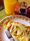 one day of processed food, one day of cooked food, right? so this morning, feeling my creative cooking juices flowing, i tried my luck at making another omelette. i had a hard time flipping the omelette over so i ended up with a half-flipped semi-circle omelette.