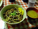 it wasn't too crowded today, we got a seat right away. we sat next to these two obnoxious international kids of middle eastern descent, their cellphones and wallets on the table, sitting with legs wide apart, reeking of cologne. they tag teamed their seats, allowing two of their friends to take their spots, disregarding whether or not anybody else was waiting for seats. i passive aggressively fantasized about one of them accidently bumping into me so i punch one of them in the face as hard as i could. fortunately, we ate in relative peace, no blood was shed.