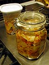 and three tablespoons of hot pepper powder. after mixing everything up, i scooped out the proto-kimchee with my hands and put them into two airtight containers for several days of fermentation. sometime next week, some sweet homemade kimchee! for some reason i really wanted to add onions into the mix, which was something my father said wasn't a natural kimchee ingredient, but i thought it'd add a better taste to the kimchee. maybe when i develop my own kimchee recipe, i can add onions. onions and five spices.