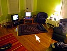 i was the second, but i didn't leave until after 2am, after finishing a whole 40 oz. bottle of root beer. i walked back home in the continuing miserable weather, the sidewalks a wet paste of crushed autumn leaves glistening in the cold rain. i pressed my umbrella into the wind and with freezing hands i finally got home, happy to be warm again. after changing out of my wet clothes, i rolled around on my new living room carpet.