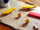 my father dropped by for a little while to help me put in the coat rack in the closet. we realized the wooden support beams were actually bowed, so we took them down for me to repaint the other side, the side that isn't as curved. i also painted the new supports for another hanger bar in the guest bedroom. these will be orange, like the closet walls. most of the tools and the unused paints were moved down to the basement and i threw away a lot of old boxes and post renovation garbage.