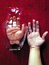 i decided to drain the severed hand that's been sitting in my bathroom, letting it dry and shrink back to its original size. i have no other choice if i want to get it out of the vase because its grown so big that it won't come out anymore, about the same size as my hand.