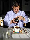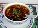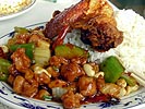 back at home, james fagerquist, former srm illustrator, came to visit. he wanted to see the house that had been featured so prominently in the weblog, and also to chat about the new coolpix 950 he got from ebay. i couched him through what he should be setting his camera to, and then later we went next door to zoe's for lunch. we were the only patrons at this sunny chinese restaurant on a semi-deserted street. i ordered the spicy peanut chicken with hot and sour soup and white rice and a chicken wing.