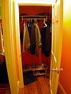 they brought over some pork buns, we ate it along with the kimchee sitting in my fridge), i made raisin english muffin ham & cheese sandwiches for lunch, and later i cooked up some homemade flan (ready made mix though, no eggs were harmed in making my dessert, along i did use sour expired milk, but i figured heating it up would kill all the germs), my father helped me install the coat rack in the coat closet (looks perfect, i'm so proud of that red coat closet) and added another set of coat rack in the guest bedroom closet, and i didn't set a single foot outside the house today, i only knew of the weather from watching the news and reading about it on the web.