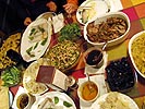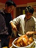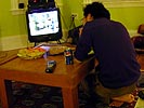 sometime in the afternoon my father showed with the 17 pound turkey (i think it was 17, it was a big turkey) for my oven, the very first time i'd using that thing (up to this point i cooked everything via the toaster oven). around nightfall he came back with more food and to check up on the turkey. jack was the first to arrive (one of my godmother's son), driving back from umass lowell, followed by my mother and sister and aunt (arriving with even more food), then my godmother and her son alex, with my other aunt (lili) and uncle matthew the last to show up. there was the initial tour of the house, everyone catching up with what i've done up to this point, with my mother seemingly taking the reign as resident tour guide. there wasn't enough seats around the small dining table in my kitchen, so eating was kind of haphazard, sitting wherever you can, or just standing and eating. while most people gathered in the kitchen, i ate in relative quiet of the living room, watching television. there's no rule of thanksgiving etiquette in my family. at least this year we decided to use real plates and silverware (upon my personal request) instead of paper plates and plastic utensils.