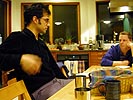 around 4pm andrew morse came over to my place the very first time. i gave him the tour and he said my place reminded him of edward scissorhands, how every room is a different color, and how he'd never seen a house painted like this before. we watched a little television ("proof of life" with meg ryan and russell crowe), and then he helped me make dinner which consisted of braised beef leftovers, thanksgiving turkey leftovers, and basmati rice.