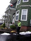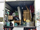 besides a dresser and a table or two, the rest of the large stuff included a couch and a futon frame with accompanying mattresses. when her apartment was finally emptied of content, we headed out to davis square with sajid and me riding in the back of the truck to make sure nothing jostled.
