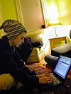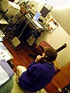she brought me back to her new apartment along with my cablemodem and ibook to test her non-functioning ethernet connection. after a round of tech support calling, she discovered that her account was actually deactivated for some reason, and it'd take another 24 hours before they could hook her back up. she came back to my place to try out her powerbook and make sure it wasn't broken, at the same time checking her e-mail.