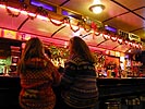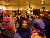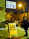 touted as the "punk craft fair for you," featuring all sorts of punksy alternative crafts. some of the stuff looked really interesting (homemade lamps, switchplates, magnets, comics, jewelry, buttons, dirty pillows, paintings, clothing, christmas ornaments), and so were some of the people there (there was an abundance of lowrider pants, a lot of underwear glimpses, as observed by julie). surrounded by misfits, i felt very at ease. the last time i was in the vfw hall was a halloween party i attended many years ago, back when drake and katrinka were still an item. figuring we'd have to meet at least somebody we knew at the bazaar bizarre, it didn't surprise us that much when we bumped into rob house (a resident of the davis square area) and his girlfriend. there just seems to be a heavy concentration of xtshers in the davis square area!