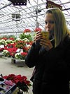 large green houses after green houses of poinsettas (in various shades of red and white) and wreath decorations, while outside christmas trees of all sizes were being sold. we wandered around, sniffing the flowers,