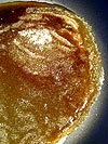 after dinner (meat buns), i made a smoothie, and then went about making a flan. i melted a half cup of sugar to make the caramel topping, then heated two cups of milk with the flan mixture. little did i realize, once the flan mix came to a boil, it quickly overflowed the pot. i moved it to an empty spot, but not before spilling a third of the fan all over the stovetop and singeing the hairs on the back of my hand from the still-on stove.