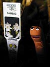 reading the indentification labels, checking the prices. we saw the birdcage filled with color canaries, finches, and quails. i scoffed at the venus flytrap jars, thinking back on how hard it was to keep one this past summer. i pricked my fingers on some miniature cactuses that i thought looked like candy bon bons. eliza bought a tropical air plant (Tillandsia), plus bagful of bulbs, including amaryllises and paper whites (narcissus). as for me, i bought a ceramic wormie, that indicates when a potted plant needs watering or not. i also bought a bottle of schultz plant food.