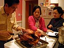 i am now obligated to get my aunt something this christmas. when the turkey finished cooking, we ate at the dining table in the kitchen. my sister showed up just when we were about to dig in. i only had three turkey rolls, i just didn't have a big appetite tonight despite all that running. when the feast was over, my parents divvied up the turkey, leaving half of it for me to eat for the next week or so.