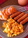 lunch, scrambled eggs, sausages, and slices of clementine oranges with a fruit elixir. dinner, wonton soup that my parents brought over and cooked, we ate in the dining room area of the kitchen.