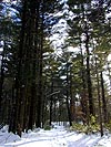 renata and i walked into the forest. from the description it seemed like the place would be teeming with wildlife, but the area was very much devoid of animal activity. not even a bird, or a squirrel. just a desolation of trees and snow. nevertheless, if you look carefully enough, there is always something to see, even if it's just something very small. at one point we had to let the cross-country skiing lady go past us, the only other human presence we encountered. not wanting to get terribly lost in the woods on the coldest day of the year (temperatures were probably in the 20's), we turned around and went back to the car.