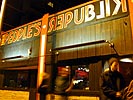 after dinner we walked to the people's republik, the selected venue for a gathering of local xtshers (ex-screen house employees). rob was already there, having just ordered a thick glass of guiness.