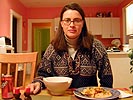 after dinner (11pm), we watched two back-to-back episodes of trading spaces while drinking some hot ginger tea and chatting some more. not wanting my guest to freeze, i quietly turned up the thermostat to 68 degrees, the house warming up to a comfortable fuzzy feeling. we were both appalled by the final trading spaces results, but the couples on the show were surprisingly happy with the change (or perhaps the world's best acting jobs). i was just disappointed that nobody ended up crying off-camera. amy left shortly afterwards, having to go to work tomorrow morning.