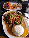 although she noticed that my entries have become increasingly longer since i've been laid off and she sort of skims through the entries. we both thought it'd be cool if somebody came out with a book that collected dotcom layoff experiences. a homeowner as well, we swapped a few renovation battle stories, both agreed that a carpenter is probably the most desireable boyfriend a girl could have, and she told me a secret about how she cleans her place. as for the food, i had the thai red curry, and it was perhaps the best red curry i've had in a long time, i'm definitely coming back to brown sugar again. by the time we left the restaurant, it was nearly empty of patrons, most of the people having left already while we were busy chatting. we exchanged good byes, and i promised to find a good interview candidate or two from my inexhaustible pool of laid off friends.