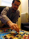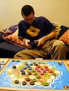 after that game was over, we went to the local video store to grab a copy of xanadu for our bad movie watching night. we came back to the apartment to play a game of settlers (expansion set, which one, i don't know) before watching the movie. elias had the most point in that game, although i came in second using my zero strategy tactic.