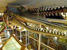 there are a few impressive specimens in the museum. there are the complete whale skeletons suspended from the ceiling.