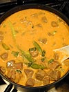 this time using the can of thai curry paste i bought in chinatown last week. it's funny how it's called red curry even though its more like orange with little flakes of red chili pepper.