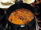 when my mother and sister arrived at 7pm, it was time to make the red curry. what's special about tonight's recipe was the addition of mushrooms and eggplants. the mushrooms were an extra addition, i've never had red curry that included mushrooms,