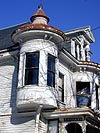 there was a bit of drama as i watched this guy trying to get out of an icy parking spot. i volunteered to help him push his car, he told me he'd been stuck there for an hour trying to get his vehicle out, picking away at the ice underneath his car but having little success. with my stick arms i tried to give him a little push as he revved his back wheels, but he still couldn't get out. he thanked me for the help and said he'd keep on trying. because he was struggling right in front of the house, it was kind of awkward for me to be just standing by and gawking at the architectural marvel, so i snapped a few quick photos and ran away. i wonder how much a house like that is worth? what i'm even more curious about is how it's arranged on the inside. are the rooms arranged concentrically or maybe by slices? it's too bad it's a private residence, and from what i hear, the people who own it don't want to sell yet haven't really done anything to preserve the house as it's slowly eaten away by the new england elements.
