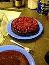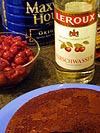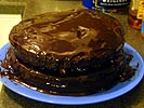 turned out we'd be making a black forest cake instead (the occasion, her boss' birthday tomorrow), so after gathering the necessary ingredients, she paid and we left to go back to her place, where the cake would be "assembled." two layers of alcohol soaked chocolate cake with a filling of cherries in the middle and covered in a glaze of chocolate sprinkled with cocoa powder, it was a multidimensional chocolate timebomb waiting to blow away whoever dared eat it. after the tutorial, i left with a spare copy of