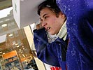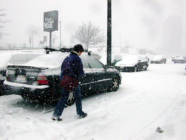 julie went ahead and purchased a brand new one, all large and metallic and snazzy with a easy carry handle. after paying, we left the store, the storm outside getting even worse, everyone walking in a hurry, tightly clasping their coats, to get out of the heavily falling snow. julie walked back to the car with light box on her head, even walking backwards to avoid getting a face full of windblown white powder. our parking space in front of cambridge city hall had exactly one minute left in the meter when we got there. after clearing the car of 50 minutes worth of snowy buildup, we left for kitchen etc. at the fresh pond mall.