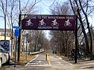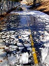 although i've been on the minuteman bike trail before, i've never taken it from davis square. traffic was light on this st.patrick's day, the occasional runner, the occasional biker, the occasional mother with stroller, and the occasional hot girl in a halter top walking her dog. road conditions were fine until i got to arlington, where sections of the path were either flooded with ice puddles or still covered in slippery snow.