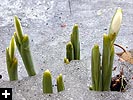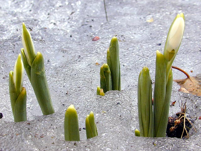although not as warm as yesterday, the weather today was warm enough to continue melting the snow in the backyard, revealing more and more bulbs poking through the ice. i can't help to think what's going on in my parents' backyard in belmont. there aren't any snowdrops but there are crocuses i buried many years ago that emerge from the snow late winter. later, the daffodils will come out, as well as the hyacinths.
