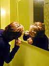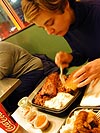 my cell phone alarm clock woke me up at 5:30pm. i vacuumed the house a little bit, then waited for julie to come and pick me up. it had started to snow again and julie was still online, telling me about how the falling snowflakes mesmerise her cat. when she finally arrived around 6pm,