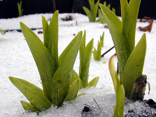 with the exception of the snow (which upon closer inspection are actually tiny ice balls) and the yellowing of the bamboo. not sure what's causing the bamboo to do that, it survived all winter long staying green, it's probably a natural cycle because i saw the same thing happening to a neighbor's bamboo grove a few blocks away.