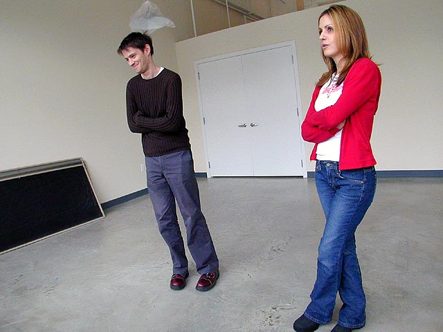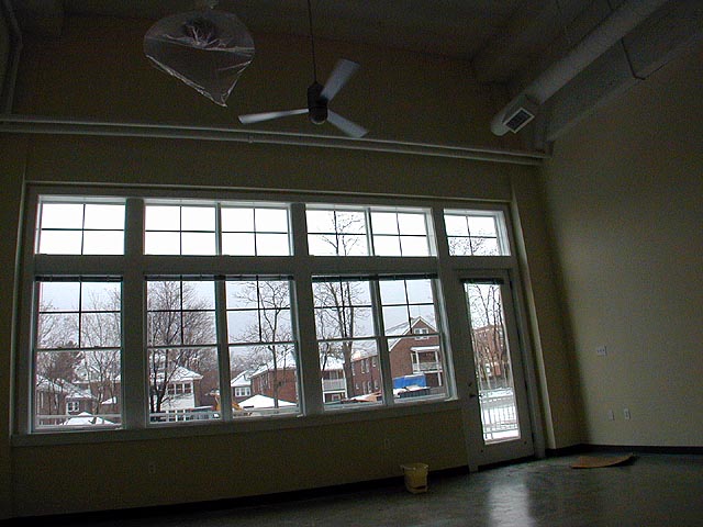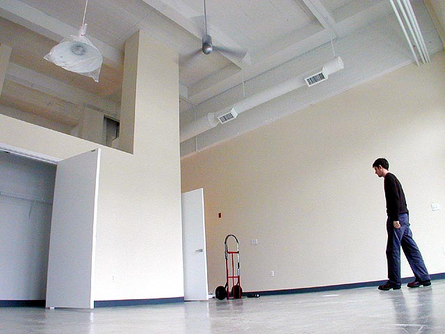if you want to count volume, my place is a mere 2520 cubic feet compared with the 23,400 cubic feet that is chez hickey! you could fit 9 of my condo into this one space. i had the honor of being the first official guest in their new home (they just closed on thursday). some appliance guys were installing an in-unit washer/dryer when i was there. i don't think i've ever lived in a place with so much space before! it'll be interesting to see how they decorate the place. i recommended some