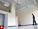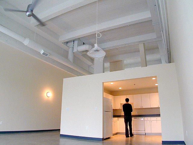 mark didn't move far from where he and his wife deb used to live, which is also very close to the apartment john+dan+brian shared. the new place was this spacious 1300 square feet loft unit, not counting the additional 300 square feet of space above the kitchen which will be a future bedroom. the first thing i noticed when i came in was the ceiling, a height of 18 feet.