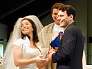 there were a couple of readings, the actual exchanging of vows, some singing, and some praying, followed by eating the body of christ time. to be honest, up to the point of the vow exchanges i was okay, but then it got scary as the wedding became just like a catholic service,