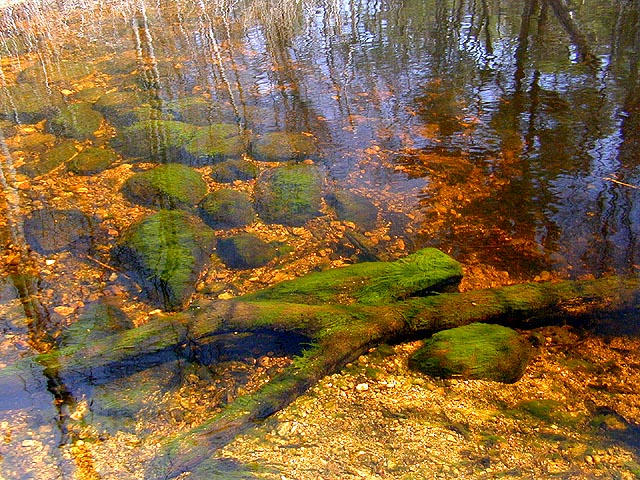 there were some flying insects, most likely drone ants out establishing new colonies or some early season gnats. somewhere in the forest we also found a junked car flipped over on its back. the make was unidentifiable, but definitely from the 1950's based on the missile cones on the bumper. one of the great things about a private nature preserve is how clean it is. just watching from the river's edge, the water was crystal clean and clear, except for a yellow-brownish tinge which i figured was from the decomposing leaf debris.