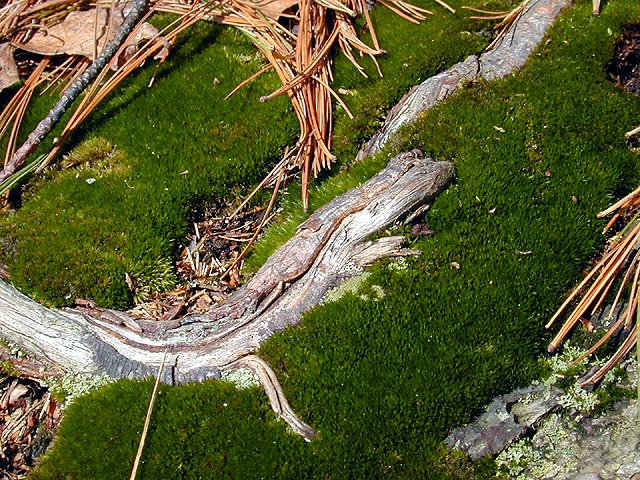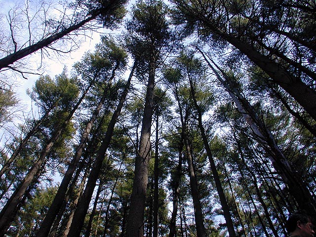 this time of the year in spring, the deciduous trees are just starting to bud. columns of pine trees reached for the sky while down below smaller pine trees competed for filtered sunlight. on the forest floor were an abundance of clubmoss, haircap moss, and even some horsetail.