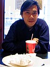 lunch was a pair of hot dogs while dinner was a burrito with alex wong. a funny story that one, we called and said we'd meet at the mexican place. i was late (too engrossed in some last minute aiming), so i ran down to boca grande. i went inside, took a quick look around, and went back out to call alex, suddenly realizing what happened. turns out he was at anna's tacqueria, so i ran all the way to anna's, and sure enough, found alex sitting there finish his burrito. when i finally got my order, still slightly out of breath, alex coolly sat there, no apologies, no "sorry for the mix-up," taking sips of his soda as i ate my burrito. afterwards, he camped out at my place for an hour before he left, telling me how people in japan though he was blind when he walked the streets in his sunglasses and camera monopod.