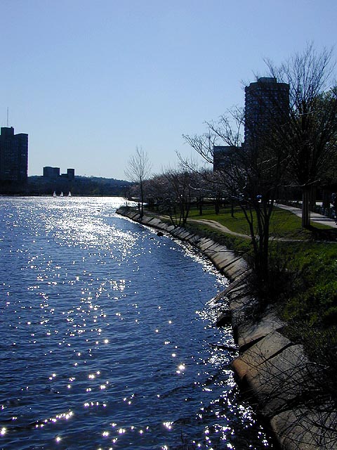 i continued my journey, underneath the BU bridge (saw some tufts graffiti, my alma mater), as i started to run into a little bit more traffic, a lot of runners, bikers, strollers, and bladers, in varying degrees of "am i hot or not?"-ness i might add.